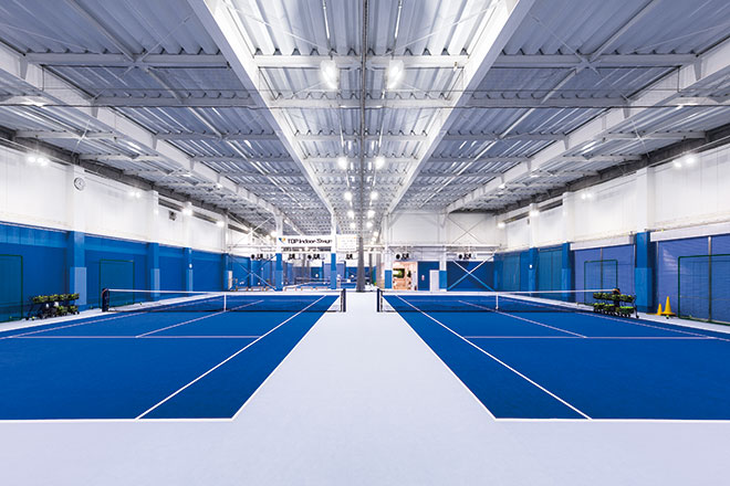 日本のテニス発祥の地・横浜に誕生したインドアテニススクールのコートを明るく快適に照らす「レディオック スリースター」