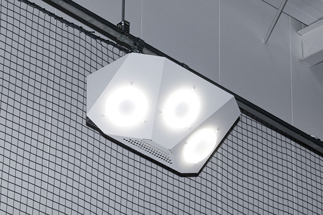 インドアテニスコートに於いては適切な照明環境も重要な要素であるとの考えのもと、インドアテニスコート専用LED照明器具「レディオック スリースター」を採用し、維持平均照度700ℓx以上を確保。まぶしさを抑制しつつ快適でより明るい照明環境を実現しました。