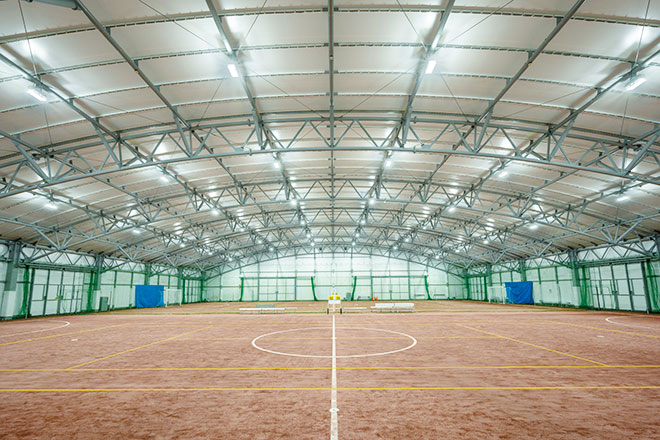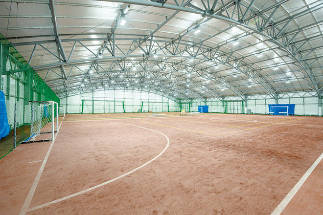 天候に左右されずにフットサル・テニスを楽しむことができる屋内スポーツ施設を「レディオック ハイベイ ガンマ」で照らし、良好な光環境を創出