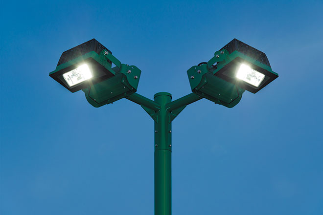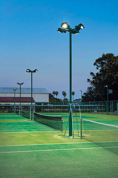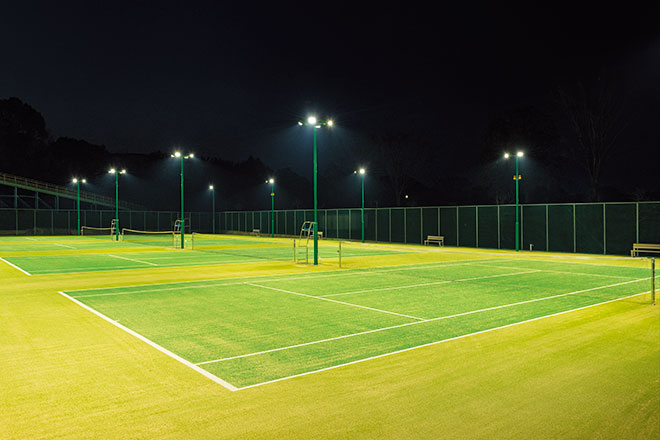 人工芝コートに改修されたテニスコートを「レディオック テニスター」で照らし、快適なプレー環境を創出