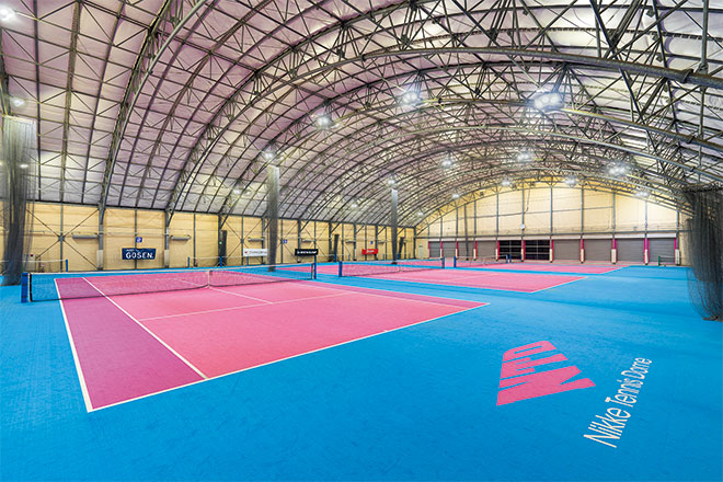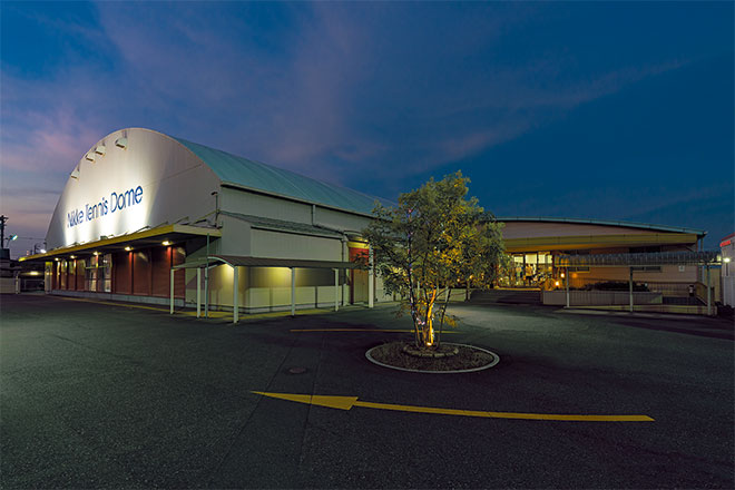 ニッケテニスドーム名古屋は、冷暖房完備のインドアテニスコート4.5面、広々としたロビー、ロッカー、シャワールーム、ショップ、70台駐車可能な専用無料駐車場など、充実した施設を備えたインドアテニススクールです。日本毛繊(株)のグループ会社の一つとして、テニス事業やゴルフ事業などを行っている(株)ニッケウエルネスが本社を置く愛知県あま市にあり、フラッグシップ店という位置付けのもと、開業21年の歴史を持っています。