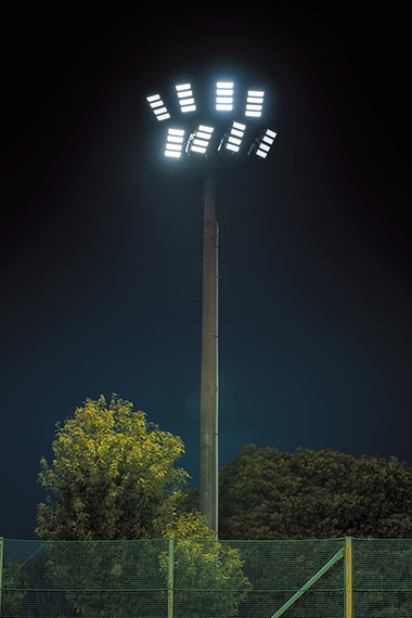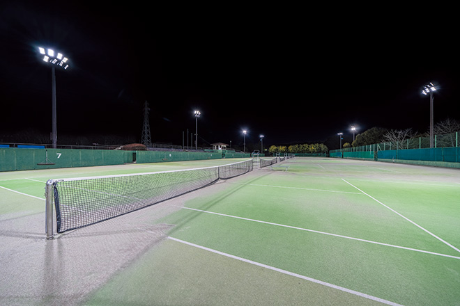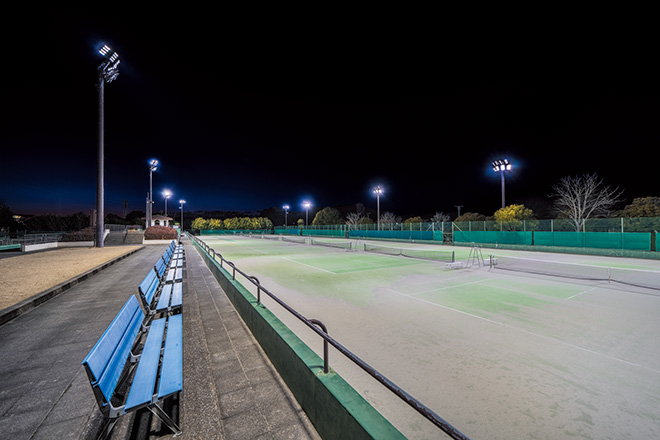 充実したスポーツ施設を備えた総合運動公園内にあるテニスコートに快適なナイター環境を創出するLED照明