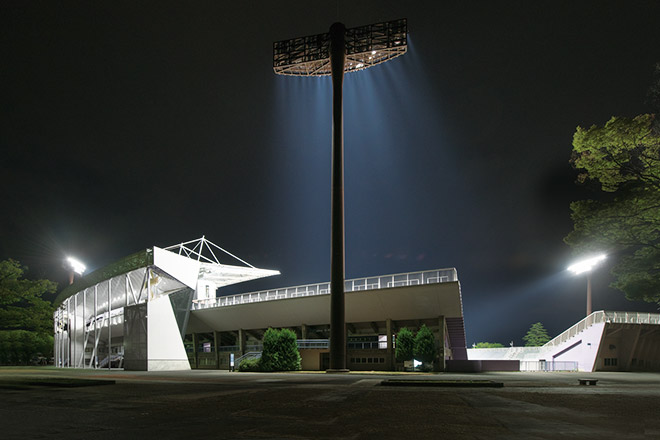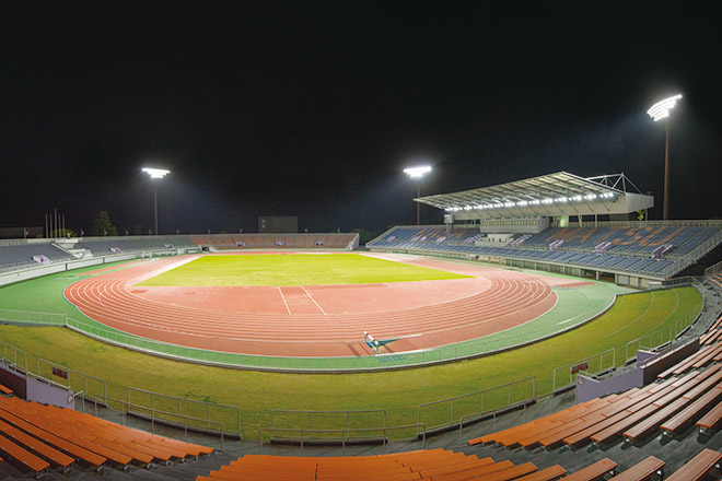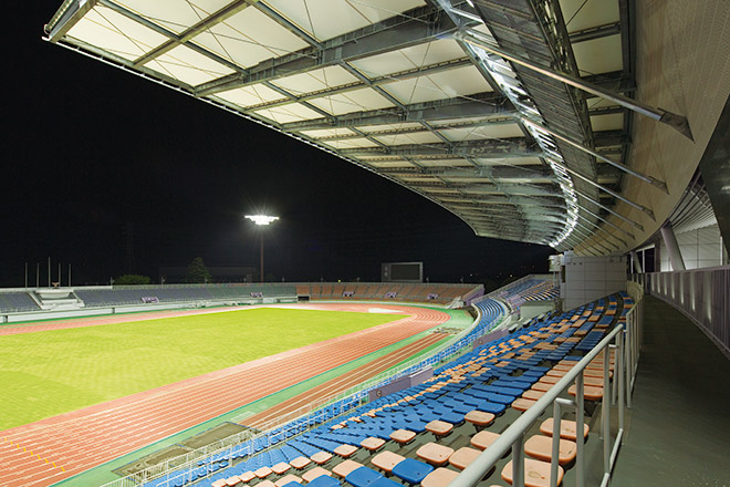 茨城国体開催へ向けてメインスタンド屋根が整備された陸上競技場をLED投光器で照らし、高品質なナイター照明環境を創出