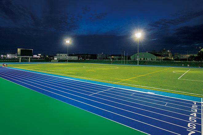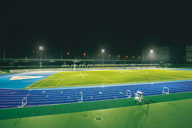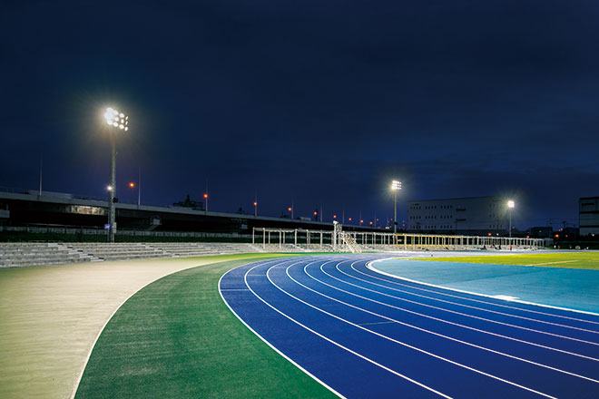 市民のニーズに対応して新たに整備された陸上競技場を照らす光