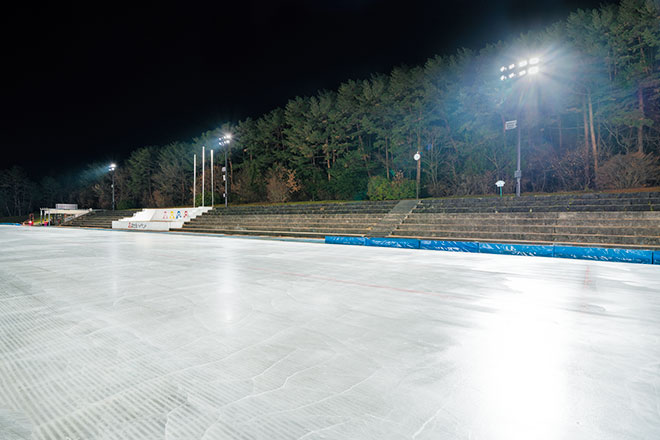 富士急ハイランド コニファーフォレストは、1986年に開催された“かいじ国体”のスピードスケート会場として整備された、クラブハウス付全周400mのスケートリンクです。国体閉会後は当社のスケート部が練習用として使用し、橋本聖子さんや岡崎朋美さんなどの冬季オリンピックメダリストを輩出してきました。当施設は、富士の裾野という絶好のロケーションに世界一のアトラクションを多く備え、幅広い年齢層の方々から絶大な人気を誇る遊園地「富士急ハイランド」に隣接しており、現在は、小・中・高・大学生や一般の方々がスピードスケート競技の練習をする場として、また、さまざまな公式スケート競技会の会場としてご利用いただくとともに、夏季は人気アーティストが出演するコンサートなどのイベント会場となり、通年運用を行っています。