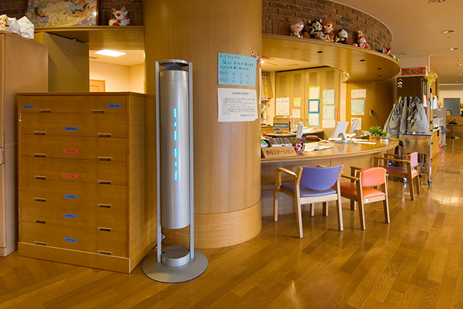 「らくらく苑」では、介護の必要な方が安心して日常生活を送れるよう、自立支援を重視した設備・サービスを整え、清潔な環境づくりに特に配慮しており、2005年12月には、高度な空気殺菌が行える殺菌灯として空気循環式紫外線清浄機「エアーリア」を8基設置しました。主に風邪対策のために導入したもので、「エアーリア」の他に加湿器を配して除菌も行っています。高齢者の方は体力的に弱いため風邪にかかりやすく、また伝染しやすいこともあり、冬季は特に注意が必要ですが、「エアーリア」設置後の昨冬からは風邪にかかる入居者が減り、かかっても他のグループにまで広がらなくなりました。床置きタイプなので簡単に設置や移動が出来る点も便利で、食堂や寮母ステーションなどに設置しています。