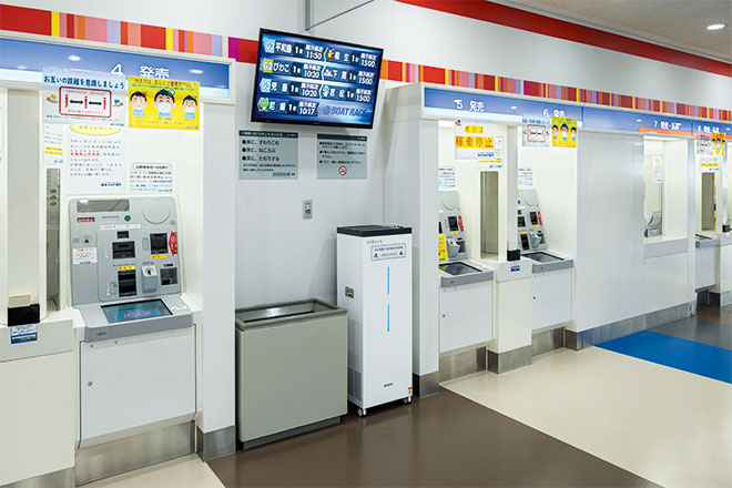 ボートピア横浜では、新型コロナ感染症拡大を受け、入場人数の制限や透明ボードの設置、除菌剤の噴霧、アルコール消毒、高性能空気清浄機の設置など、2020年6月(営業再開)から徹底した感染症予防対策を講じてきました。その一環として、空気循環式紫外線清浄機「エアーリア」を導入。多くのお客さまが訪れる発売所付近には、大容量タイプの「エアーリア プラス」を、また従業員が各種資金管理作業を行うバックヤード側には「エアーリア コンパクト」を設置して、感染症予防対策に役立てています。室内の空気を内蔵ファンで機器内に取り込み、紫外線照射で菌やウイルスを除菌したクリーンな空気を送り出す「エアーリア」の強力な除菌力、また、紫外線が器具の外に出ない構造となっており、人体に悪影響を全く与えることがない点などを高く評価しています。