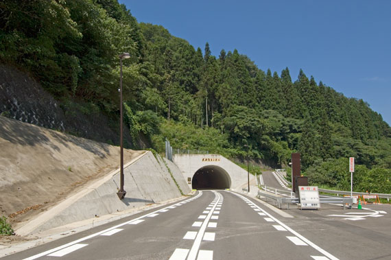 大久後トンネルの照明設備の基本照明区間に、当社の広スパン対応形トンネル照明器具が採用されました。