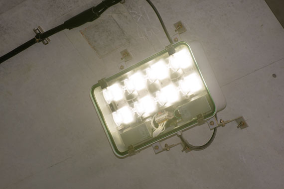 規制速度は、暫定時時速50km、岩松以南の延伸時には70kmとなるため、延伸時にトンネルの改修工事を行わず分電盤側のスイッチ切り替えのみで、暫定時・延伸時の両方に対応ができるよう照明設計を実施しています。また、終点側坑口部は海に面していて塩分を含んだ外気がトンネル坑内に入り込むため、照明器具や取付金具、坑外灯など鋼材の長寿命化への配慮も行っています。従来、入口照明にはHID照明を使用していましたが、低消費電力でランプの長寿命化を実現したLED照明器具を採用してトンネル照明のオールLED化を行い、従来のHID照明器具と比べて電気料金や維持管理費の大幅削減を図りました。