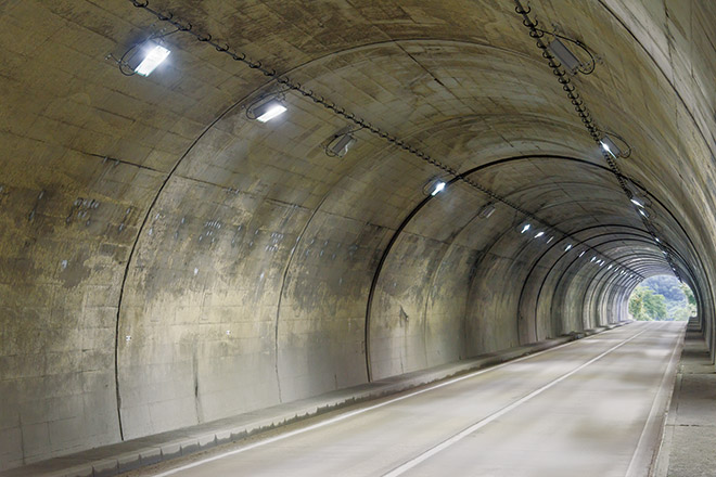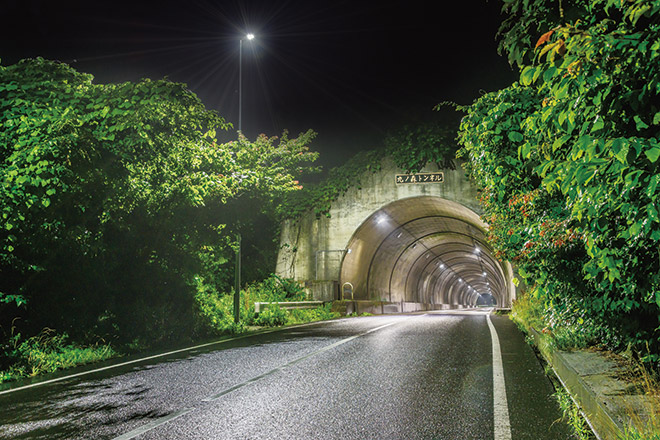 木々に覆われたトンネルを省エネに貢献するLEDの光で明るく安全に照らし出す