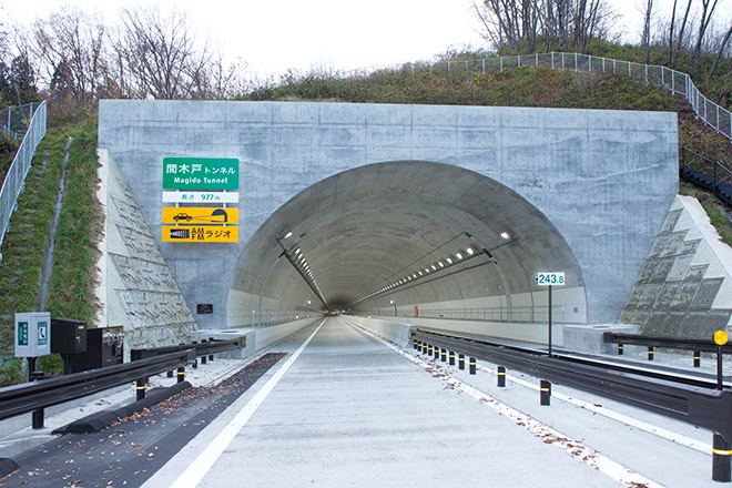 また、一般県道宮古山田線豊間根工区は、岩手県東日本大震災津波復興計画に基づき、三陸沿岸地域の復興と安全・安心を確保し、災害に強く信頼性の高い道路ネットワークを構築することを目的に実施している三陸復興道路整備事業の一環として整備されました。延長約1.3kmの県道は、山田北インターチェンジへのアクセス道路となっています。三陸沿岸道路山田宮古道路の区間内には間木戸トンネル、田名部トンネル、豊間根地区には豊間根トンネル、津軽石トンネルがあり、いずれも鋼製中央分離帯を有しています。
