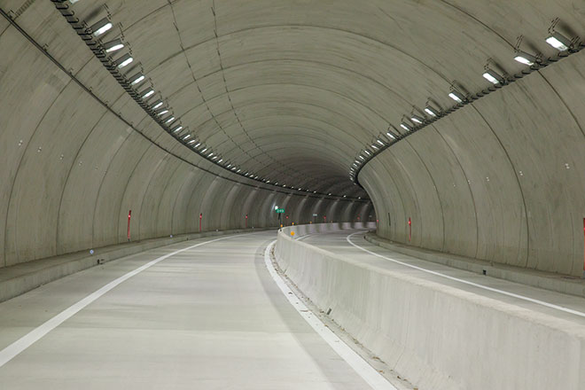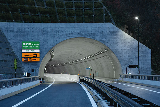 各トンネルの照明器具には、大幅な省エネ・省メンテナンスに貢献し安全にトンネルを照らす光として基本照明、入口照明ともにLED照明が採用されました。基本照明は50%・25%調光仕様、入口照明は75%・50%・25%調光仕様とし、時間帯に応じて適切な明るさに調光することも可能で、トンネルを走行するドライバーに安全かつ快適な視環境を提供しています。