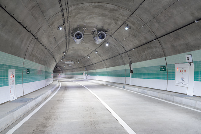 会津地方のアクセス向上に貢献する新しいバイパスのトンネルを明るく安全に照らす照明設備