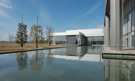 緑豊かな環境に恵まれた図書館・文書館に潤いを与える水景施設