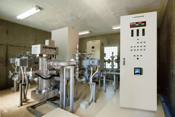Myリストに追加新潟県南魚沼市は、上杉家の智将 直江兼続生誕の地であり、近くに八海山を望む素晴らしい展望が広がる緑豊かな一帯です。冬季には積雪が2~3mになり、清らかな雪解け水が美味しい米や酒を生産する地域でもあります。南魚沼市では、後山地区の約50戸住人約180名を対象とした上水施設に、上水用紫外線照射装置アイ ウォーターピュアを設置しました。原水は浄水場近隣にある数か所の湧水を利用していますが、上水の安全性・安心確保のために導入したものです。紫外線の消毒処理によって、大腸菌ほかクリプトスポリジウムなどの耐塩素性病原生物の不活化に効果を発揮しています。紫外線は毒性もなく、有害副生成物が生じないことにも着目しました。浄水場では、現在も毎月水質検査を行って上水の安全性を確認し、衛生面には万全の対策を講じています。