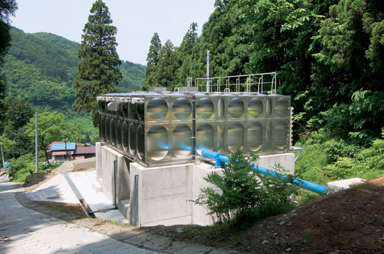 Myリストに追加新潟県南部に位置する十日町市は、周囲を山に囲まれた緑豊かな一帯で、冬には2~3mの積雪がある全国有数の豪雪地帯です。大きな水田や棚田では清冽な雪解け水を使った良質の米が生産され、コシヒカリの産地として有名な地域でもあります。十日町市では、計画給水人口約30戸、120人~130人を対象とする東田尻簡易水道配水場改修に併せ、上水用紫外線照射装置アイ ウォーターピュアを設置しました。この地域は岩盤が浅い所に有り井戸が掘れないこともあり、水源には豊富な湧水を利用しています。塩素処理との併用処理装置として、大腸菌ほかクリプトスポリジウムなどの耐塩素性病原生物の不活化に効果を発揮する紫外線照射装置を導入することで、水質の安全性確保に万全の対策を講じたものです。