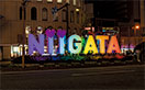 新潟駅前「NIIGATA」ロゴオブジェ ライトアップ新潟県