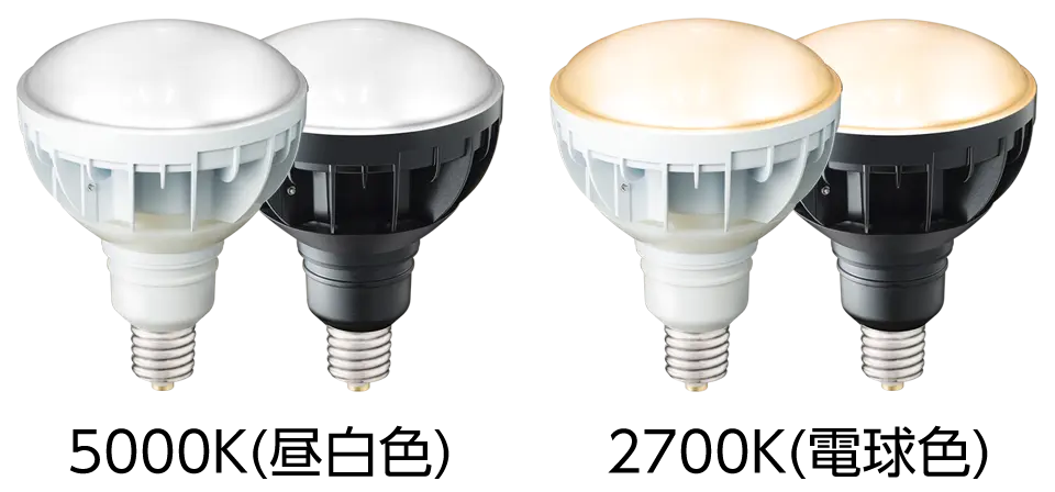 光を効率よく制御しながら自然な光の広がりを実現。均斉のとれたきれいな照射面を創ります。 セルフバラスト水銀ランプにはなかった、爽やかな昼白色(5000K)と暖かみのある電球色(2700K)の2種類をラインアップ。 照射対象にあった光色が選べます。