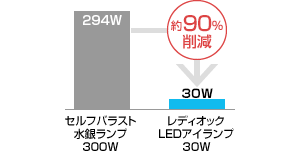 - ※1:消費電力は、LED:入力電圧100V時の特性、セルフバラスト水銀ランプ:定格電圧入力時の値を示します