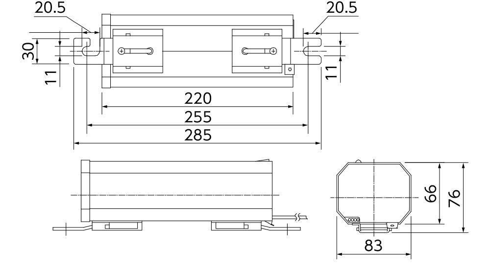 (商用電源や安定器の二次側に直接接続しないでください。)
