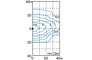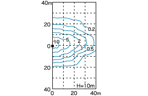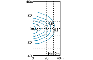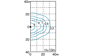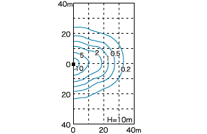 - ※曲線上の数値は、維持水平面照度を示します(単位:ℓx) 保守率 0.7