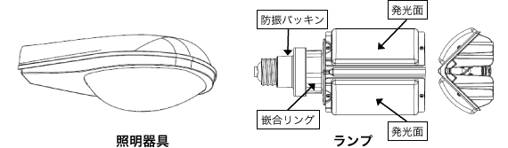 - 既設の照明器具の寿命の目安は8~10年です。LEDランプに取替えてご使用いただく場合は、安全のため既設器具の寿命内でご使用ください。自動点滅器をご使用の場合は、同時に交換することをおすすめします。