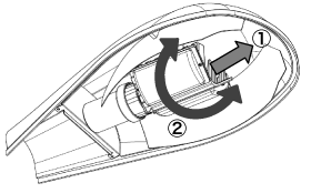 LEDライトバルブSを器具に取付けた後、発光面が下を向いていない場合は、かん合リングを緩めた後、LEDライトバルブSを引張りながら右又は左に回転させることで向きの調整を行うことができます。