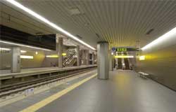 プラットホーム階の照明は,基本照明としてHf蛍光ランプ32W×1灯用(5000K)トラフ形器具をラインに見せるため連結し天井切り込みに設置している。また,アクセントとして壁面沿いにHf蛍光ランプ32W×1灯用(5000K)建築化照明と柱にセラミックメタルハライドランプ70W(4200K)ブラケットを取り付けている。