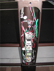 電源ユニットは,蓄電池,コントロールユニットなどが一枚のプレートに装着されており,施工時およびメンテナンス時の操作性を考慮して一体化した。ポール外部への出し入れも容易に出来る構造とした。(図5,図6)