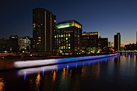 大阪,堂島川,玉江橋,大江橋,護岸,LED,フルカラーLED,ライトアップ,ライン照明