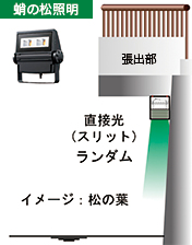 照明器具はそれぞれの光が干渉しないよう取付角度,フードなどで照射範囲を限定している。蛸の松照明は照明器具をボックスに内蔵し,スリットからのみ光が出る作りとなっている。LED光源の発光部が小さいため,スリット光がシャープになり,ボックスもコンパクトになっている。