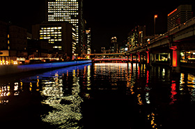 大阪,堂島川,玉江橋,大江橋,護岸,LED,フルカラーLED,ライトアップ,ライン照明