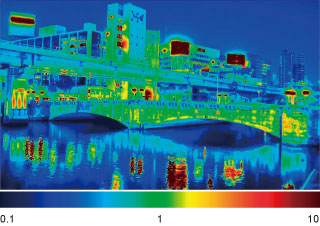 納入後,大江橋および淀屋橋にて当社の光環境評価システムQUAPIX™(クオピクス)を用いて輝度解析した結果,橋梁側面アーチ部が1cd/m²程度で一様に照明されていることが分かった。