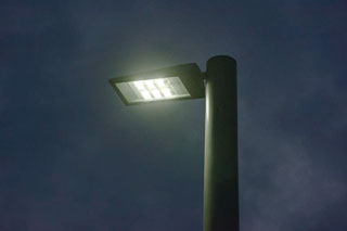 多目的用途で計画された架線柱に照明器具を設置し,必要な明るさを確保しつつ,極力照明器具の存在を消し,景観をスッキリと見せる計画となっている。照明器具としてはその計画の要求に合わせ,限られた空間や条件で設置が可能となる器具形状,構造,配光のものを設計している。