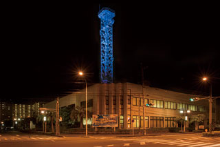 株式会社鹿児島放送は,1982年10月にテレビ朝日系列の11番目の局として放送を開始した民間テレビ局である(図1,図2)。1985年3月から本社屋上の電波塔に「KKB」(鹿児島放送の略称)のネオンを設置し,2006年12月にロゴマークのシンボルカラーを現在のものに変更するにあたり,ネオンカラーの更新を実施した。その後,2015年11月にネオンを撤去したことにより,電波塔を使い周辺地域への情報発信に利用できないか模索するなかで,電波塔のライトアップを行った。