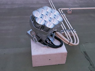 照明器具や配線を電波塔に直接設置するとノイズ障害が起こる恐れがあり,安全を考慮して電波塔から離して設置した。制御線の配線ケーブルは,電波塔と照明器具の両方のノイズ障害を防ぐため,弱電計装ケーブル(KPEV-S)を採用している。
