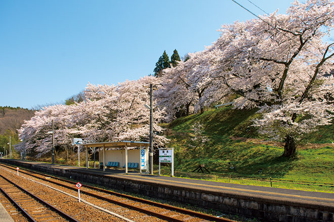 JR舞木駅は,磐越東線(福島県いわき市・いわき駅~郡山市・郡山駅間)の郡山駅から1つ目の駅で,1日の平均利用者数は700人ほどの駅である。駅構内には,線路の下に敷く砕石を作って運ぶために設けられたバラストホッパーの遺構(石垣)が密やかに佇んでいる。舞木駅は1914年7月に開業し,1993年3月に完全無人化となったが,地元住民が駅の開業を祝って植えた当時の桜(ソメイヨシノ)が今でも残っている(図1,図2)。