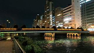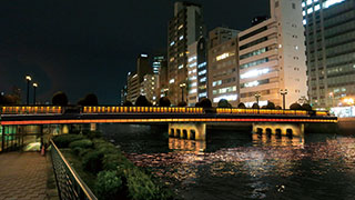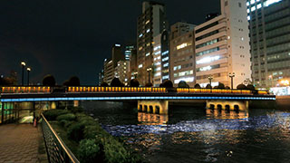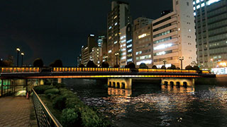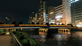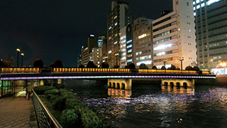 大阪,栴檀木橋,LED,橋梁ライトアップ,道路低位置照明,高欄照明,景観照明,フルカラーライン照明