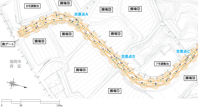 南ゲートからウエストゾーンまでの1.2km間には,自動車レーン・自転車専用レーン・歩行者道路がそれぞれ整備され,安全性の向上が図られている。ウエストゾーンに位置する校舎(工学部・農学部・理学部棟)や課外活動施設へのアクセスが良くなり,所要時間が大幅に短縮された。
