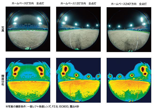 輝度分布測光 | 水平面照度 (野球場外漏光) |