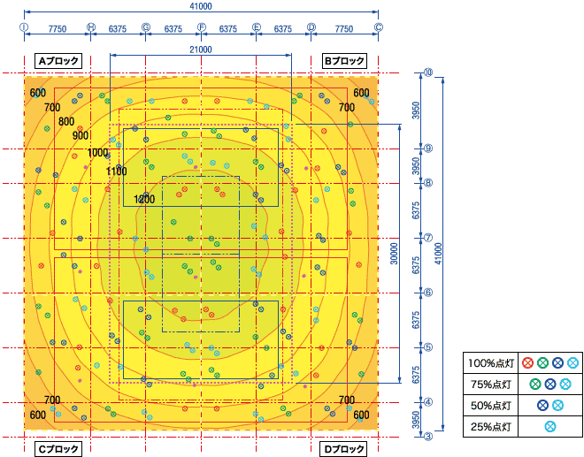 メインコートの照度分布図を図4に示す。