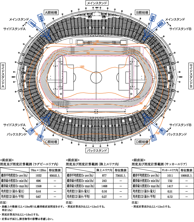 | ラグビーエリア内 | 平均2000ℓx以上 | 平均1000ℓx以上 |