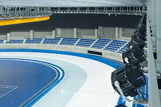 リンクコース上の設計条件は,国際競技とTV中継の要件を満たしながら,さまざまなクラスの競技および,選手や一般利用者の練習にも対応することを条件とし,選手はもちろん観客への影響も考慮した適切な器具の選定を行い,建築設備条件を踏まえた配置により,可能な限りアスリートファーストの照明環境(選手目線のグレアの軽減)を形成することをコンセプトとした。