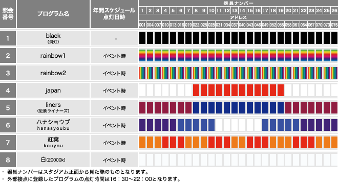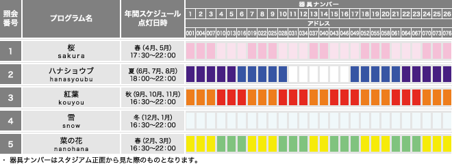 本施設の各点灯パターン一覧(年間スケジュール,イベント)を図20および図21に示す。