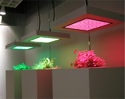 植物育成と人工光源の関連は,エジソンが白熱電球を発明(1879年)してから,約40年後(1920年)に光周性が発見されたのが端緒とされている。わが国では1937年にキクの電照栽培が試みられ,その普及は愛知県渥美市で1950年ごろとされている。一方,植物工場の研究は1974年(高辻)より始められ,現在国内30数カ所で稼働中である。使用光源も高圧ナトリウムランプ,蛍光ランプ(近接照射)などに加えて,最近では赤色LED による近接照射の施設が普及し始めている。今回の施設では植物工場の照明に関与する光源の殆どが使用されている。