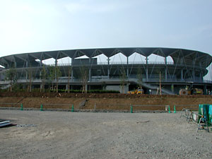 また,千葉市蘇我スポーツ公園は,災害時には,広域防災拠点となる予定であることから,球技場は,現地対策本部,物資の備蓄機能等の役割を担うこととなる。図1,図2に球技場の全景を示す。(平成17年10月竣工)
