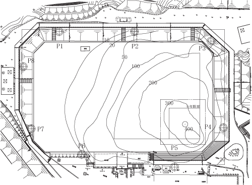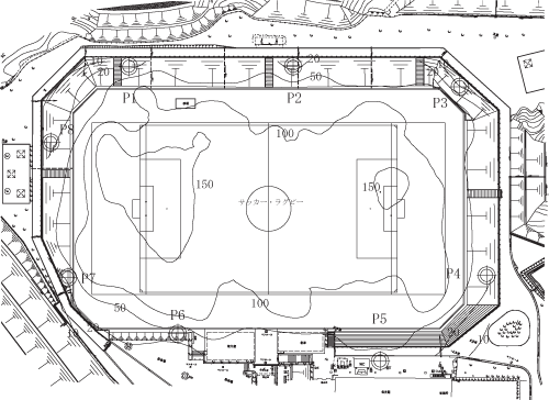 照明設計するにあたっては,必要照度のほかに省エネ・低コスト・光害対策等様々な事が要求される。本施設設計時においても省エネ・光害対策を考慮し,高効率で光害対策のルーバを内蔵したアクロスター™ を採用した。しかし,竣工前の照度実測段階において近隣住民よりさらなる漏光の軽減を求められ,取付角度の変更等で対応した。今後は,益々求められる条件が厳しくなるので,照明器具設計・ランプ設計・照明設計各々の担当者の意見交換する機会を増やし総合的に対応する必要があると考えている。