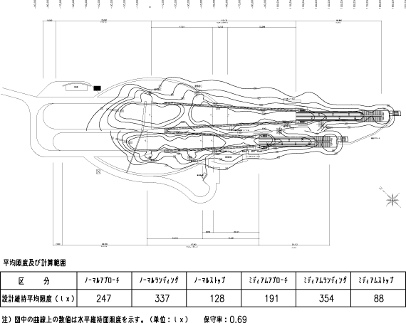 照明手法としては,ジャンプ台のアプローチ部分は道路照明方式,カンテ・ランディングバーン及びストップゾーン部分は投光照明方式(原則として追跡照明)を採用した。