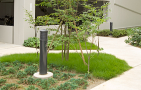 cerca-H,cerca-L共にグローブ(発光部カバー)にフロスト処理を施して暖かみの強調を図っている。cerca-Lは,歩道部に連続配置し,階段部スロープに局部配置している。cerca-Hは,プレイロットや広場など広く照らす所に配置している(図11,図12)。