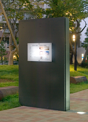 LEDウォールサイン灯は,この地域の歴史を紹介する内照式の案内板(パネル部 縦160×横340)であり,光源に50個のLEDを使用することにより,明るさの均斉化と省エネを実現している(図13)。
